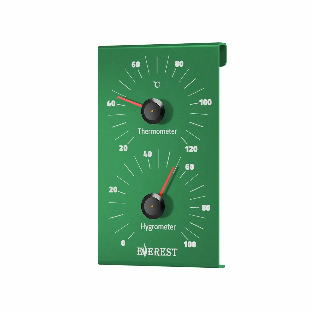 Термогигрометр EVEREST, алюминий GREEN (TG-28) — прибор для бани и сауны. Корпус из алюминия, цвет зеленый. Термогигрометр для бани для контроля микроклимата в парной.