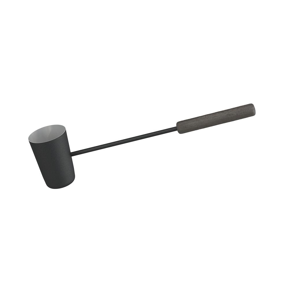 Предназначен для подачи воды в закрытую или на открытую каменки банных печей, с целью получения различных видов пара. Изготовлен из нержавеющей стали толщиной 0,8 миллиметра. Объем черпака 450 мл. Деревянная ручка защищает парящихся от воздействия высоких температур и позволяет оперировать черпаком на значительном расстоянии от печи и каменки. Для предохранения от механических повреждений черпак окрашен порошковой эмалью чёрного цвета.