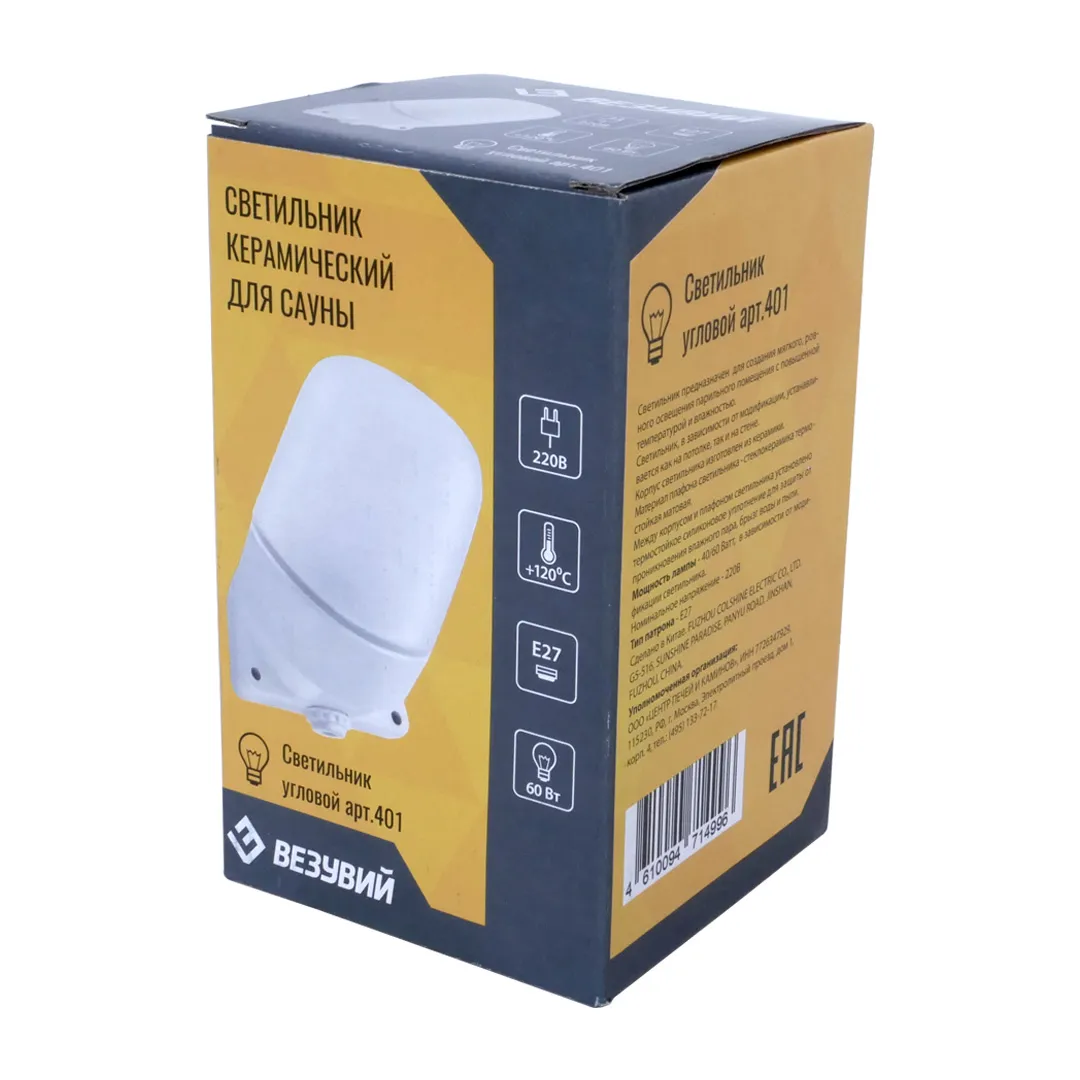 Светильник ВЕЗУВИЙ для сауны ("Белый", арт.401) Угловой