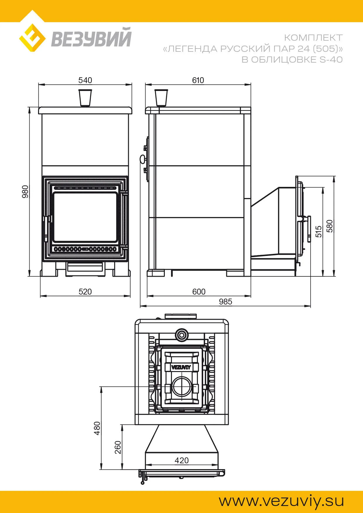 - ВЕЗУВИЙ Легенда Русский пар 24 (505) под облицовку;