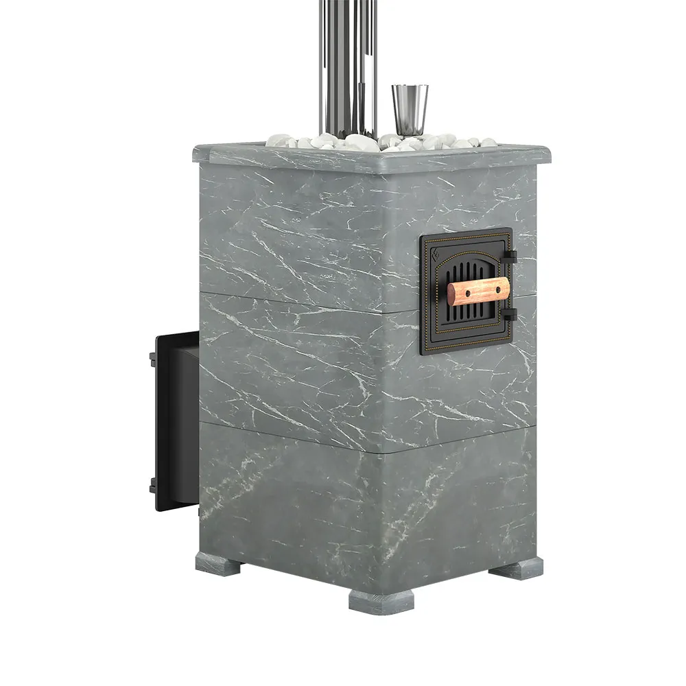 Комплект "Легенда Русский пар 24 (505)" Талькохлорит, S-40. Чугунная печь для бани в камне. Дровяная банная печь с закрытой каменкой на 30 кг. Облицовка из талькохлорита. Для парной 12-24 м³.