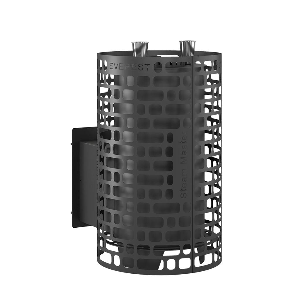 Внешний тепловой контур образован открытой каменкой в виде цилиндрической сетки, вмещающей в себя 140 килограммов камней. Сетка сделана из стали, в новом минималистичном дизайне EVEREST.